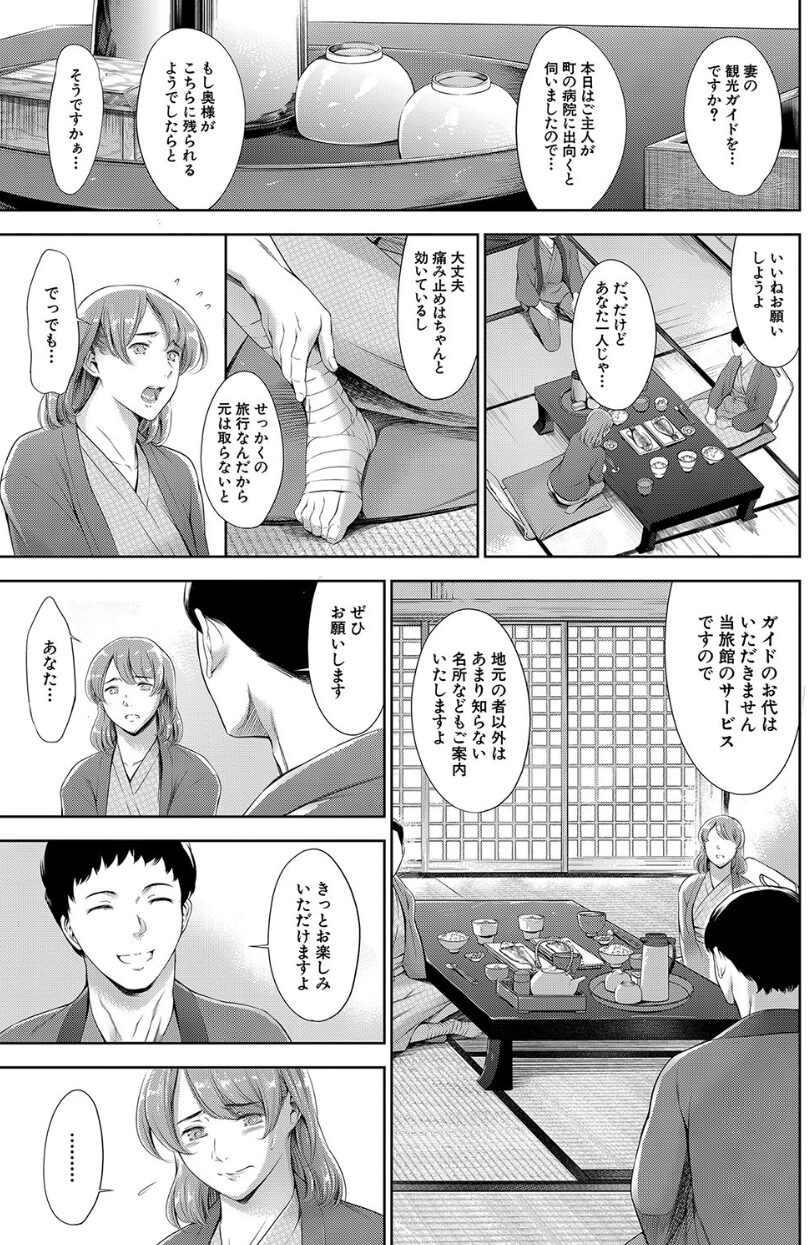 | あらすじ | ごめんなさい、あなた… 二度とあの人を裏切らない…そう誓ったばかりなのに… 『おんせんやど』 新婚の桐香は夫と温泉旅行に来ていた。 しかし旅館に到着する間際に夫は怪我をしてしまい、夜の相手もできずにいた。 桐香が一人女湯に浸かっていると、そこへ宿の若旦那が入ってきて…。 混乱する桐香だったが、強引な彼に流されるままセックスしてしまう…! 『Do you like lap dance?』 少年時代、兄の恋人・アンジーの裸が見たくてストリップ小屋へ忍び込んだダニーは、セキュリティに見つかってつまみ出されてしまう。 あれから10年――成長したダニーと、結婚してストリッパーを引退したアンジーは再会するのだが! ? |